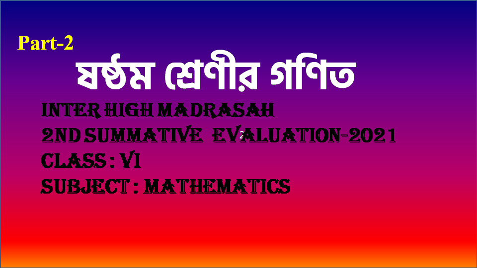 INTER HIGH MADRASAH মাদ্রাসা MATHEMATICS CLASS- 6